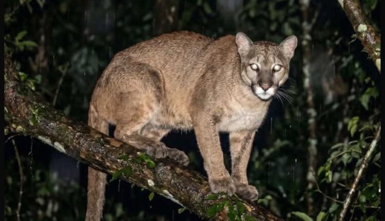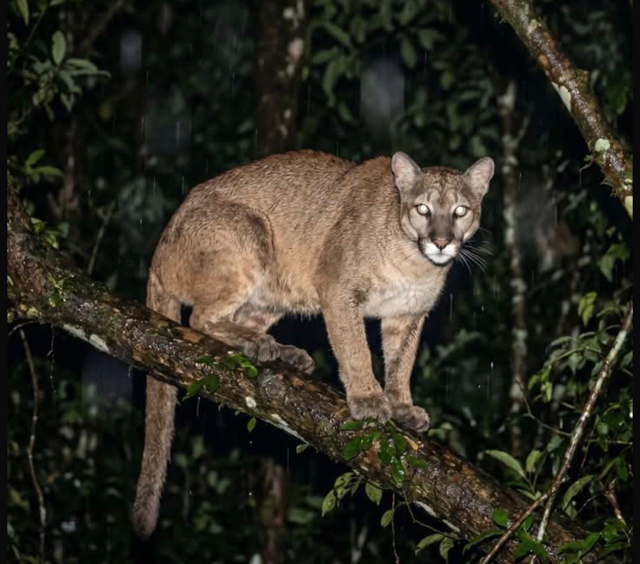 Onça-parda é flagrada em propriedade rural na Vila Rosário, em Castro