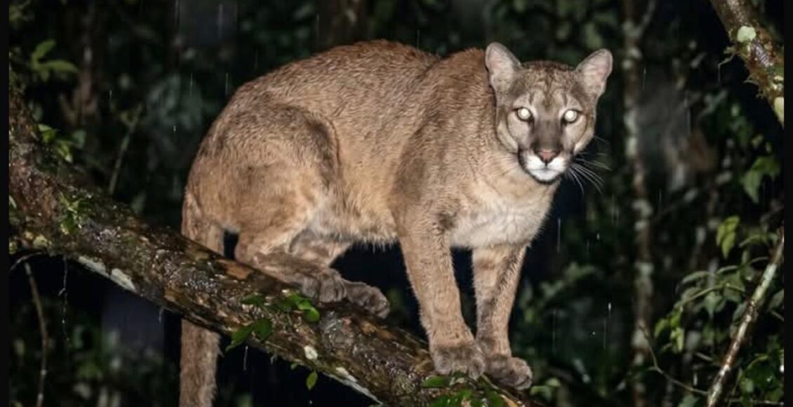 Onça-parda é flagrada em propriedade rural na Vila Rosário, em Castro