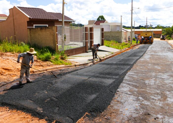 No bairro Santo Antônio, a pavimentação da continuação da Rua Heráclio Mendes de Camargo avança até a ligação com a PR-151, atendendo a uma antiga demanda da população e melhorando o acesso entre a área urbana e a rodovia. Já no Alpha Royal, todas as ruas do bairro estão sendo contempladas com asfalto novo, em uma obra executada com recursos da Secretaria Municipal de Governo e realizada pelo Departamento de Serviços, com servidores próprios do município.