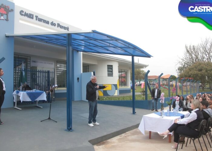Castro – A Prefeitura de Castro entregou oficialmente no sábado (6) a reforma e ampliação do Centro Municipal de Educação Infantil (CMEI) Turma do Pererê, localizado na comunidade do Tronco. O investimento de R$ 1 milhão, com recursos próprios do município, permitiu a construção de duas novas salas de aula, refeitório, sala de professores, depósito e a revitalização completa da estrutura.