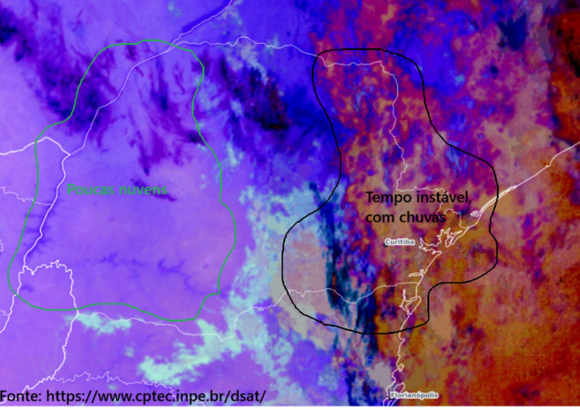 Segundo o meteorologista do Simepar, Samuel Braun, a instabilidade se espalha do Norte até o Leste do Paraná. Durante a madrugada, o tempo permaneceu instável entre as regiões Norte, Campos Gerais, Região Metropolitana de Curitiba (RMC) e o Litoral do estado.