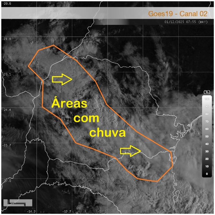 No Paraná, segundo o Simepar, o quadro é semelhante. A manhã desta segunda-feira começa com instabilidade em diversos setores do Estado. Chove em várias regiões, com registro de raios acompanhando as precipitações. No entanto, de acordo com os institutos meteorológicos, as chuvas são predominantemente fracas a moderadas.