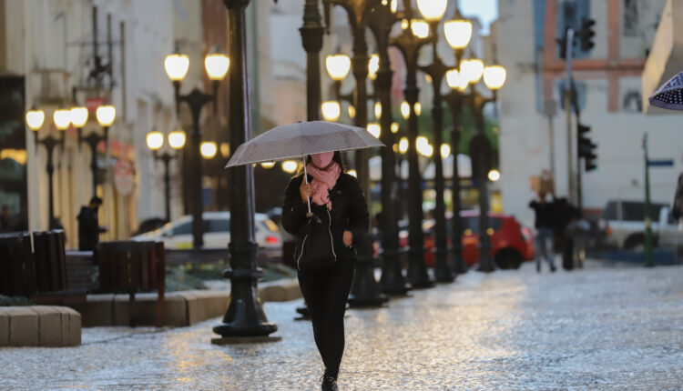 De acordo com o Simepar, sistema trará chuvas entre a tarde e a noite de quinta no Oeste e Sudoeste, e na sexta nos Campos Gerais e RMC. No fim de semana, o destaque fica pelas baixas temperaturas e pouca amplitude térmica desde o Oeste até a faixa Leste. Em Curitiba, a máxima ficará em 12°C no sábado.
