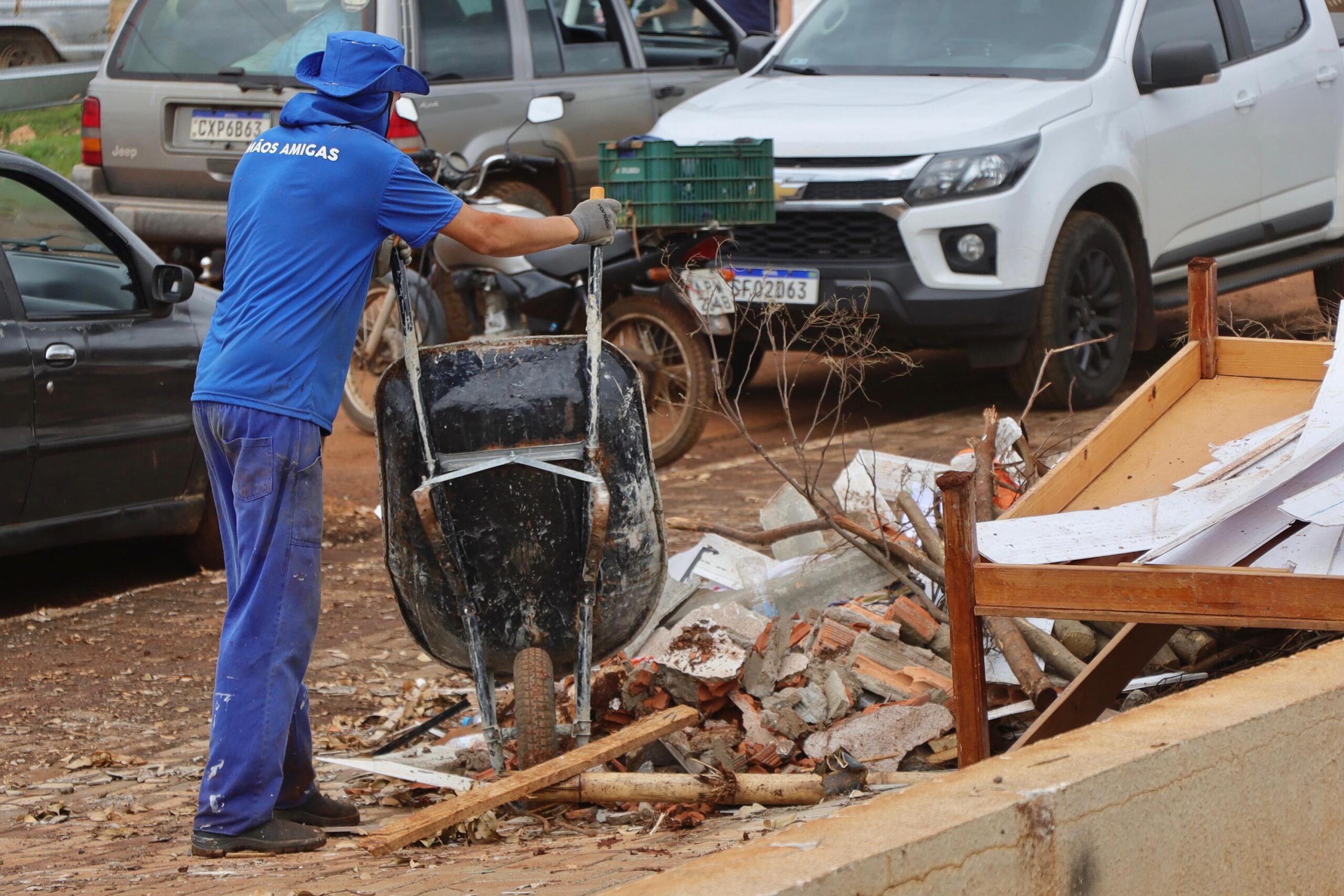 As equipes seguem atuando no Colégio Estadual Ludovica Safraider, a unidade mais atingida pelo tornado, onde continua a remoção de resíduos para liberar a área que será reconstruída. O mutirão também abrangeu a APAE do município, com ações de limpeza, organização e suporte para retomada das atividades, além do destacamento da Polícia Militar do Paraná (PMPR).