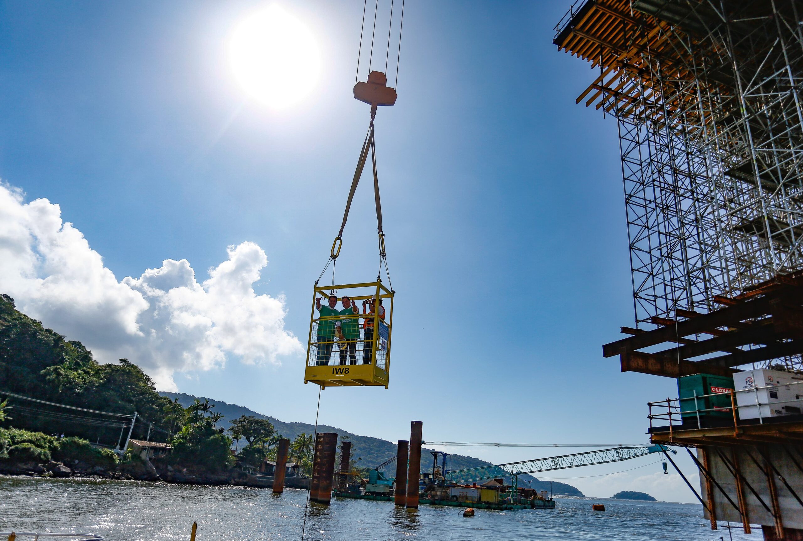 Durante a visita do governador, a obra também recebeu uma benção do padre Reginaldo Manzotti. A ponte é aguardada há décadas por moradores do Litoral e turistas. A previsão é que a obra esteja concluída em abril de 2026.