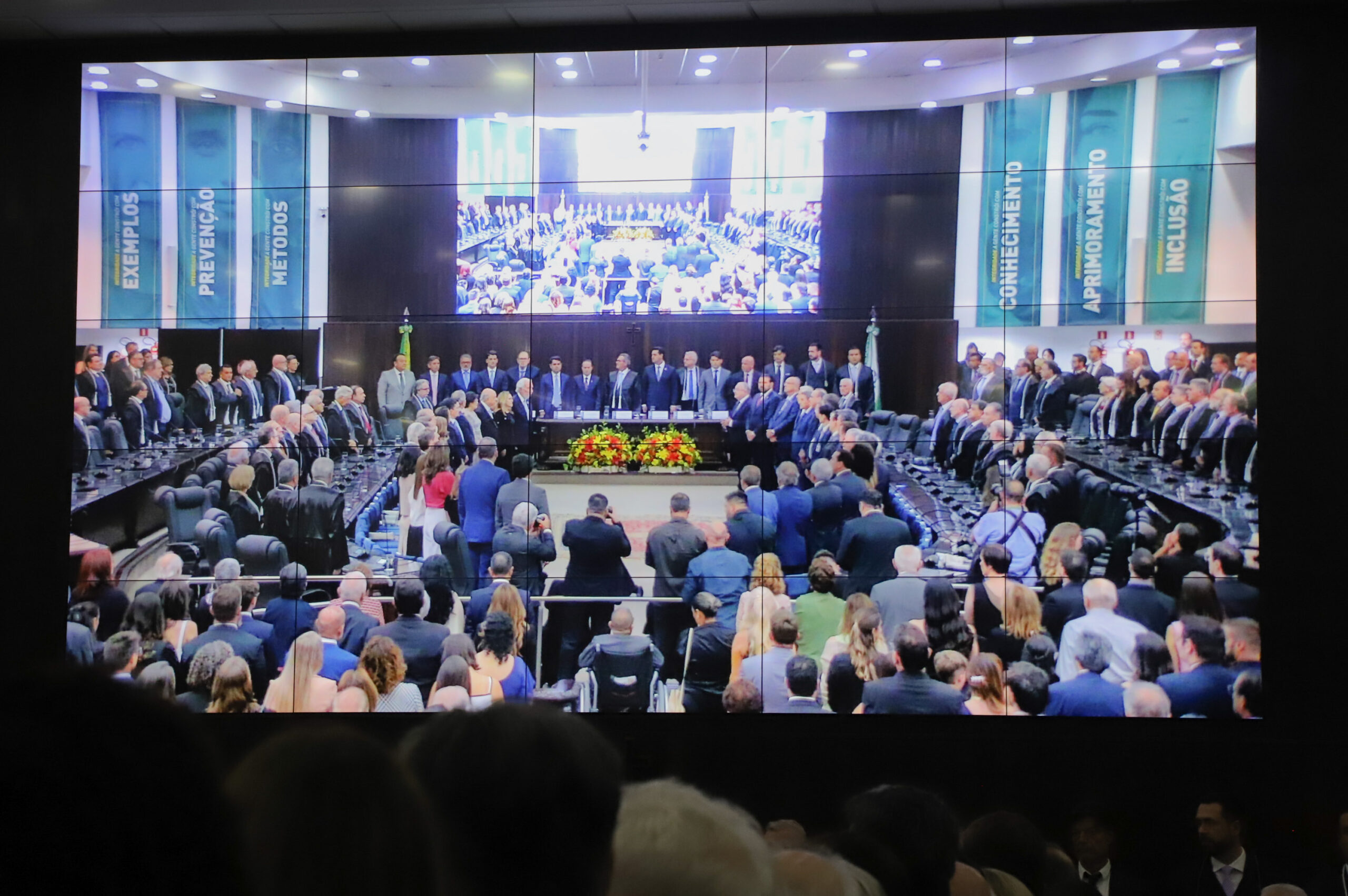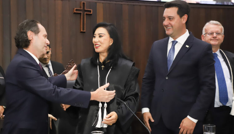 Curitiba – O governador Carlos Massa Ratinho Junior participou da posse da nova diretoria do Tribunal de Justiça do Estado do Paraná (TJPR) na noite desta segunda-feira (3). Pela primeira vez em 132 anos, a instituição passa a ser presidida por uma mulher, a desembargadora Lidia Maejima, que comanda o TJPR ao longo do biênio 2025-2026 após a eleição interna da cúpula diretiva realizada em novembro do ano passado.