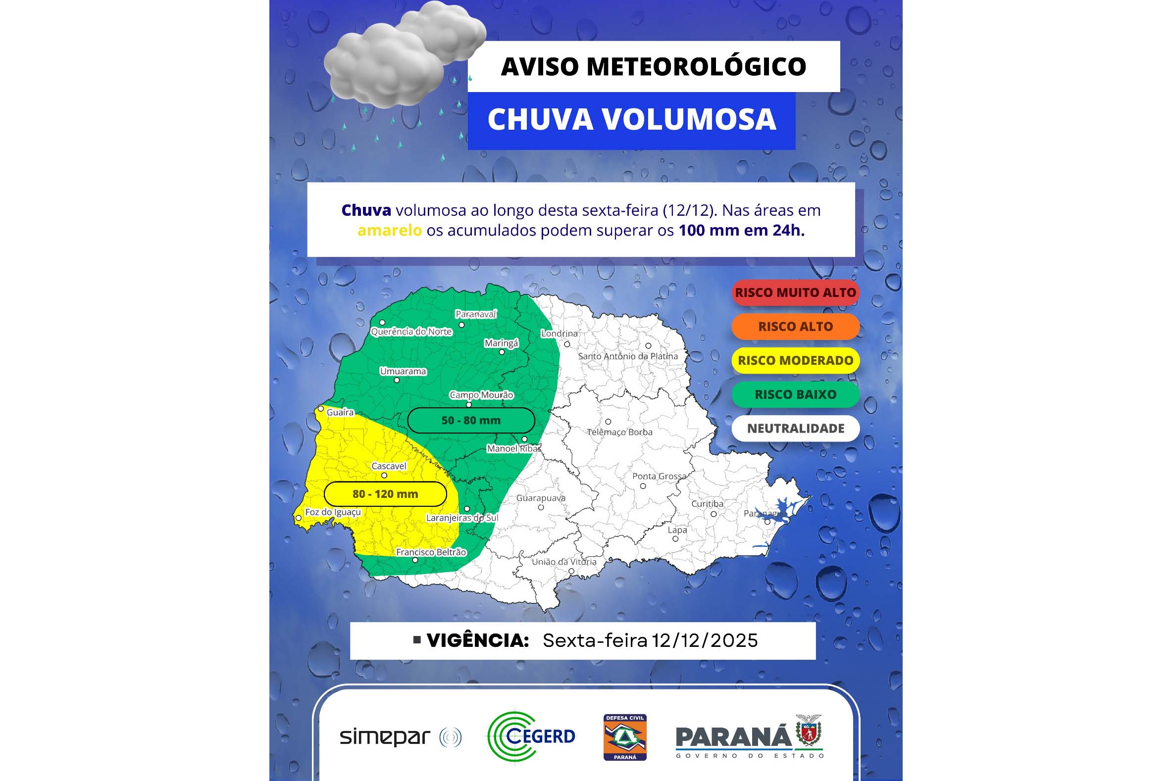 • Paraná terá tempestades severas neste fim de semana, aponta previsão do Simepar