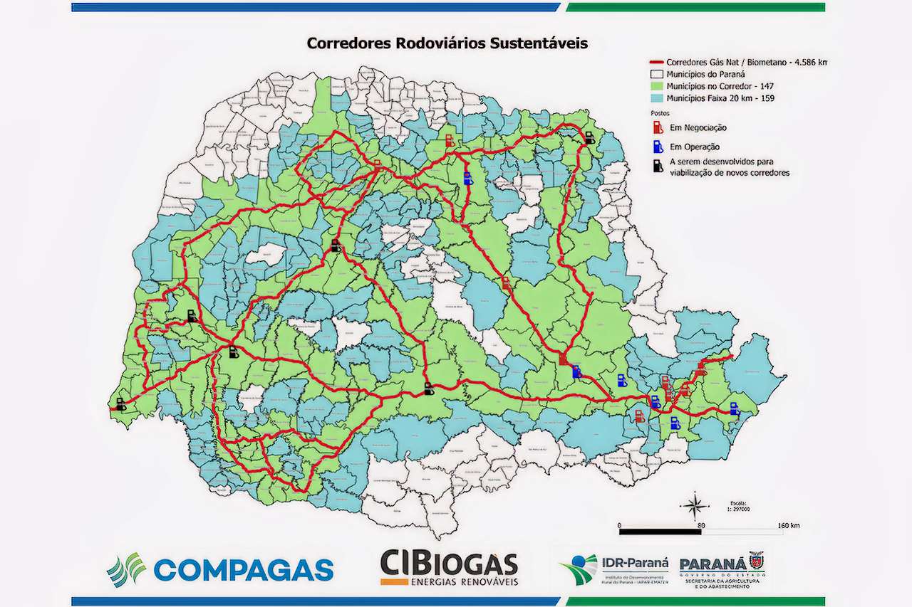 No ano passado a Compagas iniciou a operação da primeira rota conectando os municípios de Paranaguá e Londrina. No percurso já estão funcionando 11 postos de abastecimento de veículos leves e pesados movidos a gás. Novos postos devem se integrar neste ano.