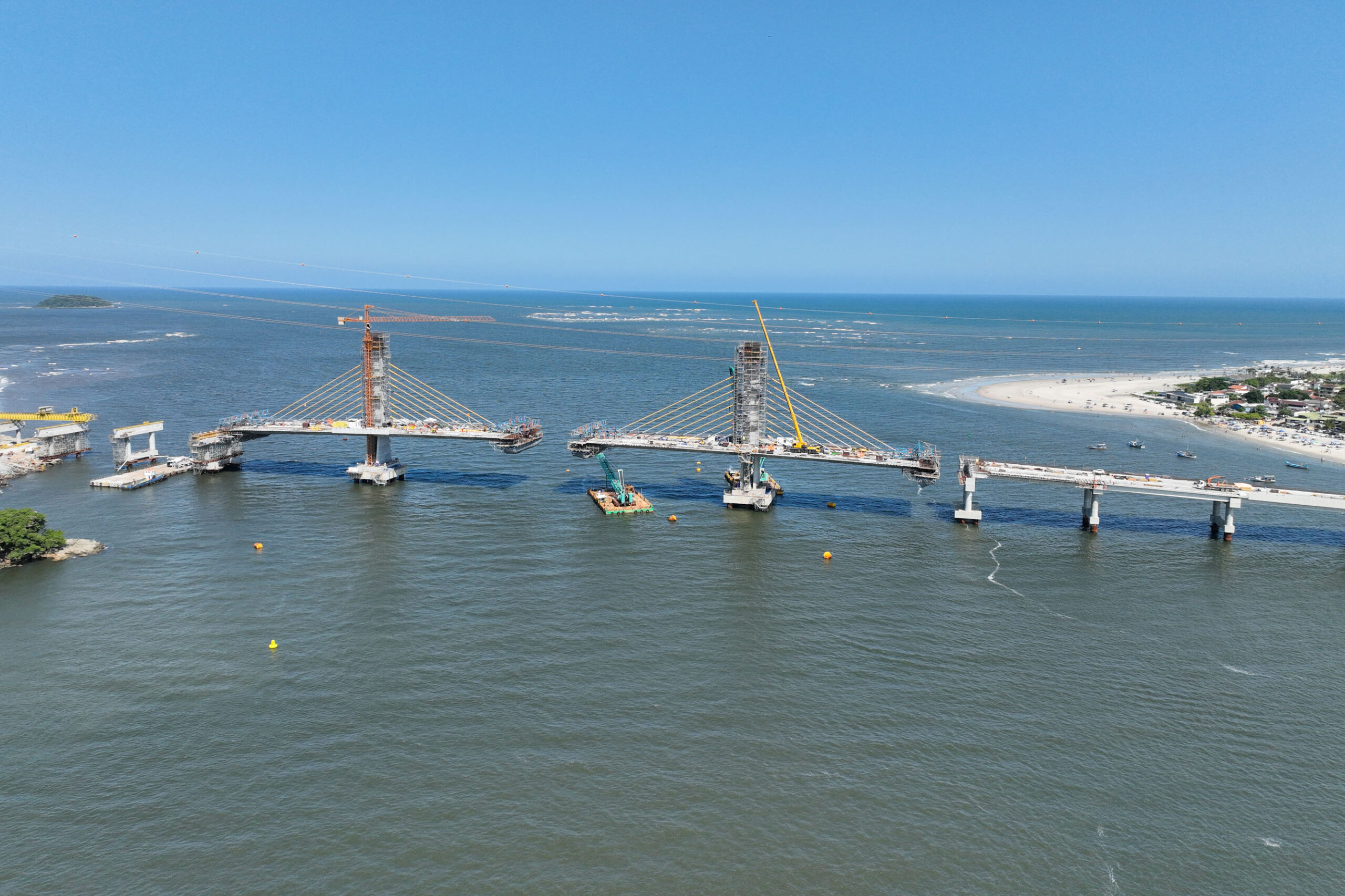 Ao final da obra, o trecho estaiado contará com 2 aduelas de disparo mais 55 aduelas típicas, incluindo as aduelas de fechamento, elemento que fará a ligação definitiva entre os dois balanços e marcará a união final da estrutura.