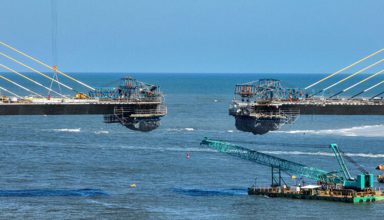 Litoral – A obra da Ponte de Guaratuba caminha para um de seus capítulos mais marcantes: o fechamento do trecho estaiado. É quando os dois lados da estrutura, construídos a partir dos apoios 04 e 05, finalmente se encontram sobre o canal de navegação da Baía de Guaratuba, simbolizando a união definitiva da ponte.