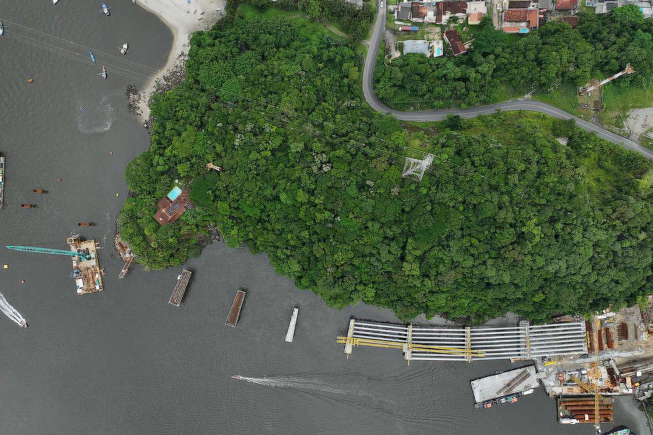Até o momento, 29 vigas longarinas, que são as estruturas horizontais que formam a base da ponte, já foram posicionadas sobre as travessas. Até o final de janeiro, a previsão é que 52 vigas estejam posicionadas na ponte. Além disso, mais da metade das 64 estacas previstas na obra já foi concretada.