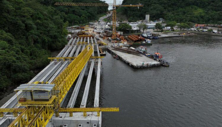 Traçado da Ponte de Guaratuba começa a ganhar forma com instalação de vigas longarinas