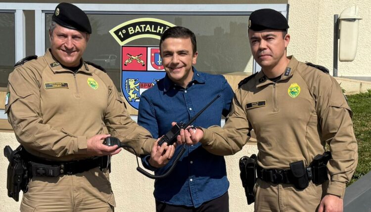 O deputado federal Aliel Machado (PV-PR) realizou, nesta sexta-feira (12), a entrega de 57 novos rádios transmissores portáteis para a Polícia Militar. Os equipamentos vão reforçar a segurança pública em duas importantes unidades: 34 rádios destinados ao 1º Batalhão da PM, em Ponta Grossa, e 23 ao 26º Batalhão, em Telêmaco Borba.