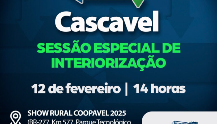Cascavel – A Assembleia Legislativa do Paraná promove nesta quarta-feira (12), em Cascavel, na região Oeste do estado, mais uma edição do projeto Assembleia Itinerante. Os deputados estaduais participam da 17ª sessão especial de interiorização, que pela primeira vez será realizada no Show Rural Coopavel, uma das principais feiras do agronegócio da América Latina. O evento será às 14 horas, para ouvir sugestões e receber as reivindicações da população, aproximando o Parlamento estadual dos cidadãos.