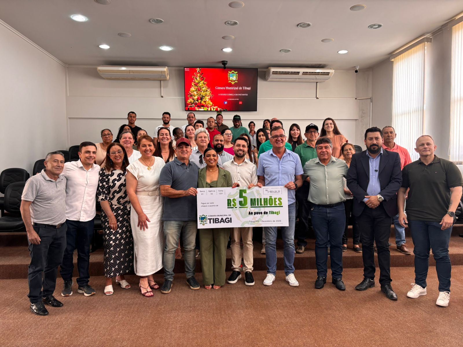 Tibagi – A Câmara Municipal realizou, nesta segunda-feira (22), um ato oficial que marcou a devolução de R$ 5.400.636,25 aos cofres da Prefeitura. O valor é resultado da economia feita pelo Poder Legislativo ao longo do ano de 2025 e representa uma das maiores devoluções da história do município.