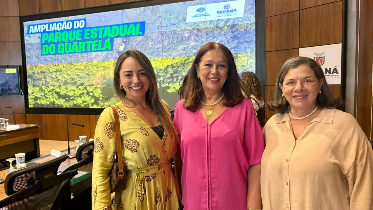 A prefeita em exercício de Tibagi, Helynez Ribas, participou da formalização do acordo, juntamente com as secretárias de Turismo e Meio Ambiente Kellin Ramos e Leri Ribeiro, e destacou a importância dos avanços para o município e para a região. “Estamos participando de um importante ato de acordo entre a Klabin e o Governo do Estado, com a ampliação do nosso Parque Estadual do Guartelá, a construção de uma clínica de hemodiálise em Telêmaco Borba, assim como outros benefícios que virão. Estamos muito felizes, porque essa expansão do parque vai alavancar o nosso ICMS Ecológico e, além disso, a população tibagiana também terá um melhor atendimento na área renal. Então, estamos muito contentes”, afirmou.