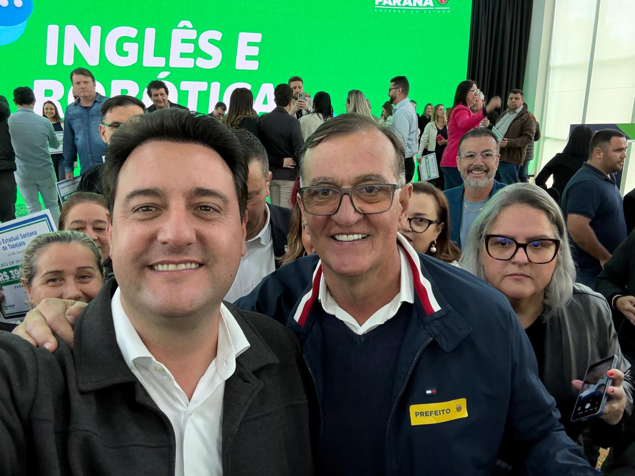 Curitiba – O prefeito Rildo Leonardi participou nesta terça-feira (21), em Curitiba, da cerimônia de anúncio de novos investimentos na área da educação, realizada pelo Governo do Estado do Paraná. O evento contou com a presença do governador Carlos Massa Ratinho Junior, do presidente da Assembleia Legislativa, Alexandre Curi, e de prefeitos de diversas regiões do Estado.