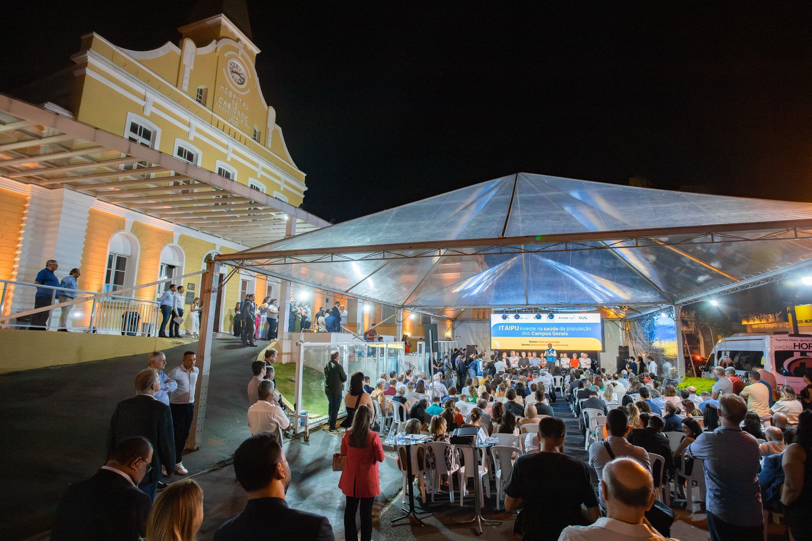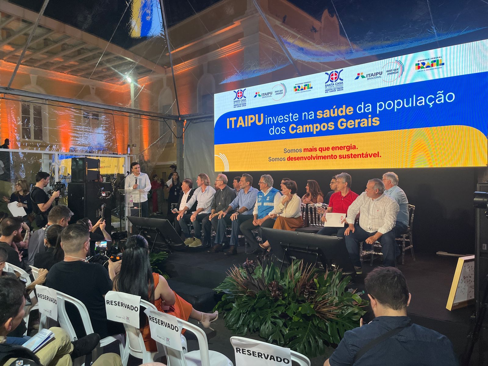 Ponta Grossa – Prefeitos e prefeitas da Associação dos Municípios dos Campos Gerais (AMCG) estiveram na cerimônia que marcou o anúncio de novos projetos para a Santa Casa de Ponta Grossa. Durante o evento, realizado na segunda-feira (31), foi celebrado um convênio entre o hospital e a Itaipu Binacional, que prevê reformas na Maternidade SUS e também a construção de uma estrutura no novo Hospital do Câncer da Santa Casa para abrigar um acelerador linear de última geração. O aparelho, utilizado no tratamento de pacientes oncológicos, será adquirido por meio do Ministério da Saúde. Também estiveram presentes o ministro Alexandre Padilha, o diretor-geral da Itaipu, Enio Verri, entre outras autoridades.
