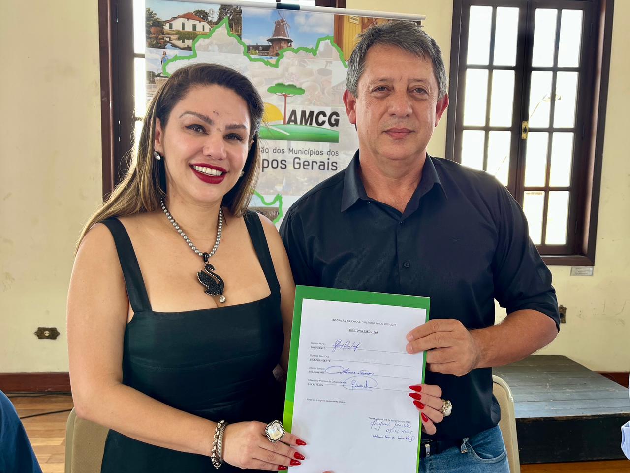 Durante o encontro, também foi apresentada oficialmente a chapa inscrita para concorrer à nova diretoria da AMCG no pleito que ocorre no dia 11 de dezembro, em Ponta Grossa. O grupo é liderado pelo prefeito Gerson Nunes (Sengés), candidato à presidência, e composto ainda pelos prefeitos Douglas Modesto (Ipiranga), Altamir Sanson (Palmeira) e Elisangela Pedroso (Carambeí).