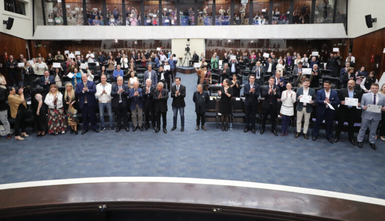 Alusivo ao Dia do Trabalhador, a Assembleia Legislativa do Paraná promoveu na terça-feira (29), no Plenário da Casa, uma sessão solene em homenagem aos trabalhadores paranaenses em destaque. Esta foi a 30ª edição deste evento, denominado Prêmio Personalidades Empreendedoras e organizado pela Fundação Força Trabalhista do Paraná (Fotrapar). Os proponentes do evento foram os deputados Marcio Pacheco (PP) e Ney Leprevost (União).