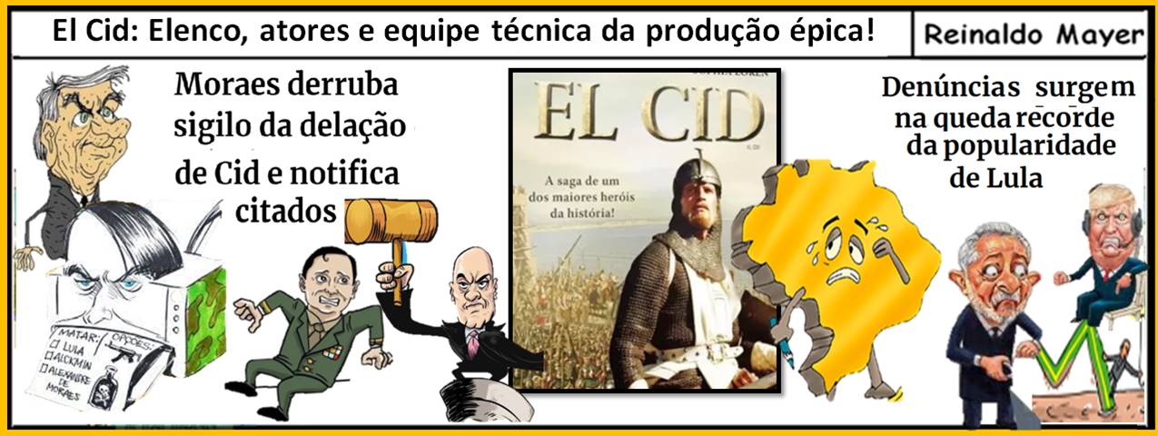 Um dos filmes dos anos 60, EL CID, esbanjou grandiosidade: tudo o que se vê na tela, os castelos, os barcos e milhares de soldados, são reais, nunca foram usados “pinturas de fundo ou efeitos visuais” na história do cavaleiro espanhol que buscou unificar “uma Espanha dividida” que combatia os Mouros invasores. Com a lealdade questionada por “monarcas que colocaram a ambição pelo Poder acima dos interesses do País”, ele foi para o exílio, mas continuou a defender o País em confrontos épicos e a sua história teve um grande final, ao se estabelecer como “a lenda que triunfou sobre a própria morte”. No Brasil, o Coronel do Exército Mauro Cid, oriundo da AMAN, está vendo tudo o que conquistou “duramente” com seus esforços pessoais sendo desconstituído, mas a ideia centralparece ser a de ofuscar “com efeitos especiais a imagem e o grau de confiança que a população deposita nas Forças Armadas”. “Lendas” poderão voltar e triunfar, ainda vivos, nos cenários atuais?