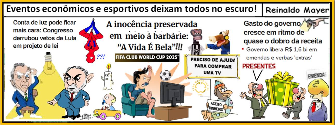 O tempo passa, “mesmo que alguém tenha quebrado um relógio em Brasília naquele 8 de janeiro”, tenha sido preso de novo depois de ter sido condenado a 17 anos e libertado depois de 2 anos e 4 meses de detenção por ter cumprido “boa conduta carcerária“! Segundo analistas financeiros, “o Governo segue em ritmo de gastos que já é quase duas vezes maior que a arrecadação entre 2023 e 2025”. Mas o que pode acontecer? Haverá um sério risco de “shutdown – termo que indica “uma parada”, quando faltará dinheiro para manter até os serviços básicos! E isso pode levar ao colapso “as contas públicas a partir do anos de 2027”? Mas esse problema terá que “ser resolvido pelo próximo Presidente”! E a população? Terá sempre a sua “inocência preservada”, acompanhando o futebol na televisão, chegam a três jogos por dia! E se a conta de luz causar mais um “apagão”? Restarão “os últimos créditos do celular”! “Ma fino a quando? La vita non era bella? Mamma Mia”!