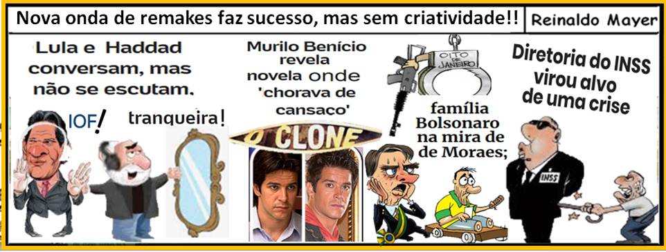 As últimas notícias políticas sobre o Brasil parecem ser sempre as mesmas, um pouco “requentadas” mas sem apresentar “nada que possam favorecer de imediato o cidadão brasileiro”. A Câmara dos Deputados analisou o decreto de mais um imposto como “infeliz e defende avançar num debate mais estrutural sobre o IOF” com Fernando Haddad. Enquanto isso, o Presidente esteve em Recife, para “a autorização de uma Obra Federal”, mas continuou com criticas sobre o seu antecessor e afirmou que no futuro “não se pode votar em qualquer tranqueira para governar o País”. Mas analistas políticos afirmam que “Eduardo Bolsonaro não traiu o Brasil ao pedir que políticos americanos pressionem o STF e o atual Governo a aliviar perseguições contra a família”. Se “remakes” de novelas antigas revela que até atores famosos “choravam de cansaço”, essa “Onda de notícias políticas sobre o Brasil” terá o mesmo efeito? Pois todas pecam pela falta de criatividade!
