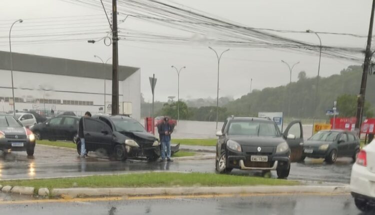 A chuva forte que cai na região exige uma atenção a mais de motoristas, pera evitar acidentes com o o ocorrido perto das 9h45 da manhã dessa segunda-feira (9), na rotatória do Condor Supermercados.
