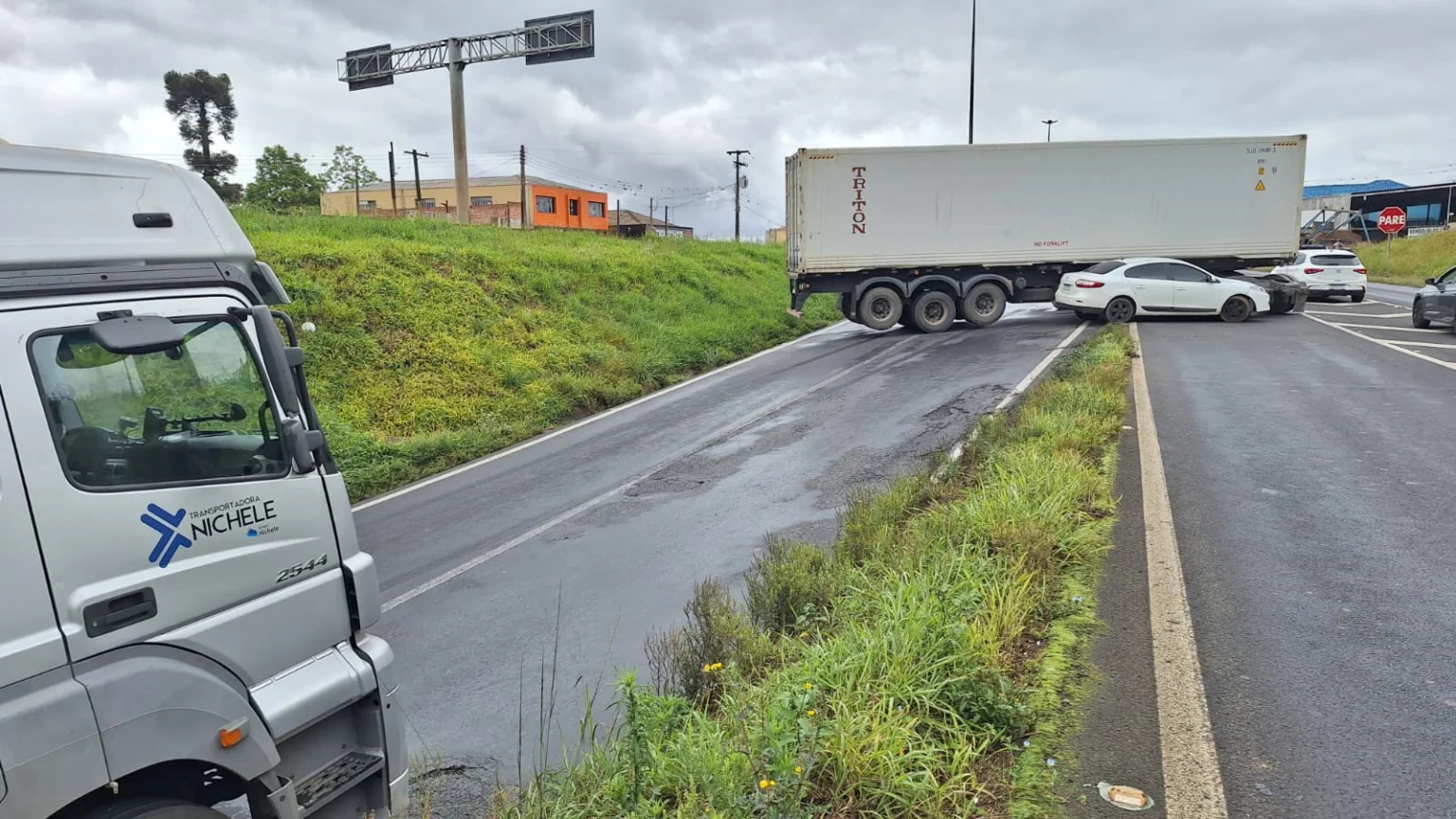A Polícia Rodoviária Federal (PRF) foi acionada para orientar o trânsito, assim como equipes da Concessionária PRVias. Ninguém se feriu.