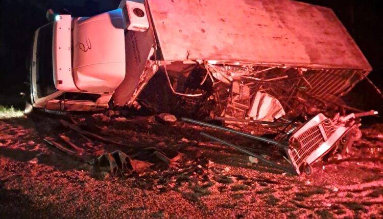 Sinistro do tipo complexo envolveu dois veículos de carga e provocou bloqueio total da rodovia por mais de duas horas na noite de quarta-feira (10)