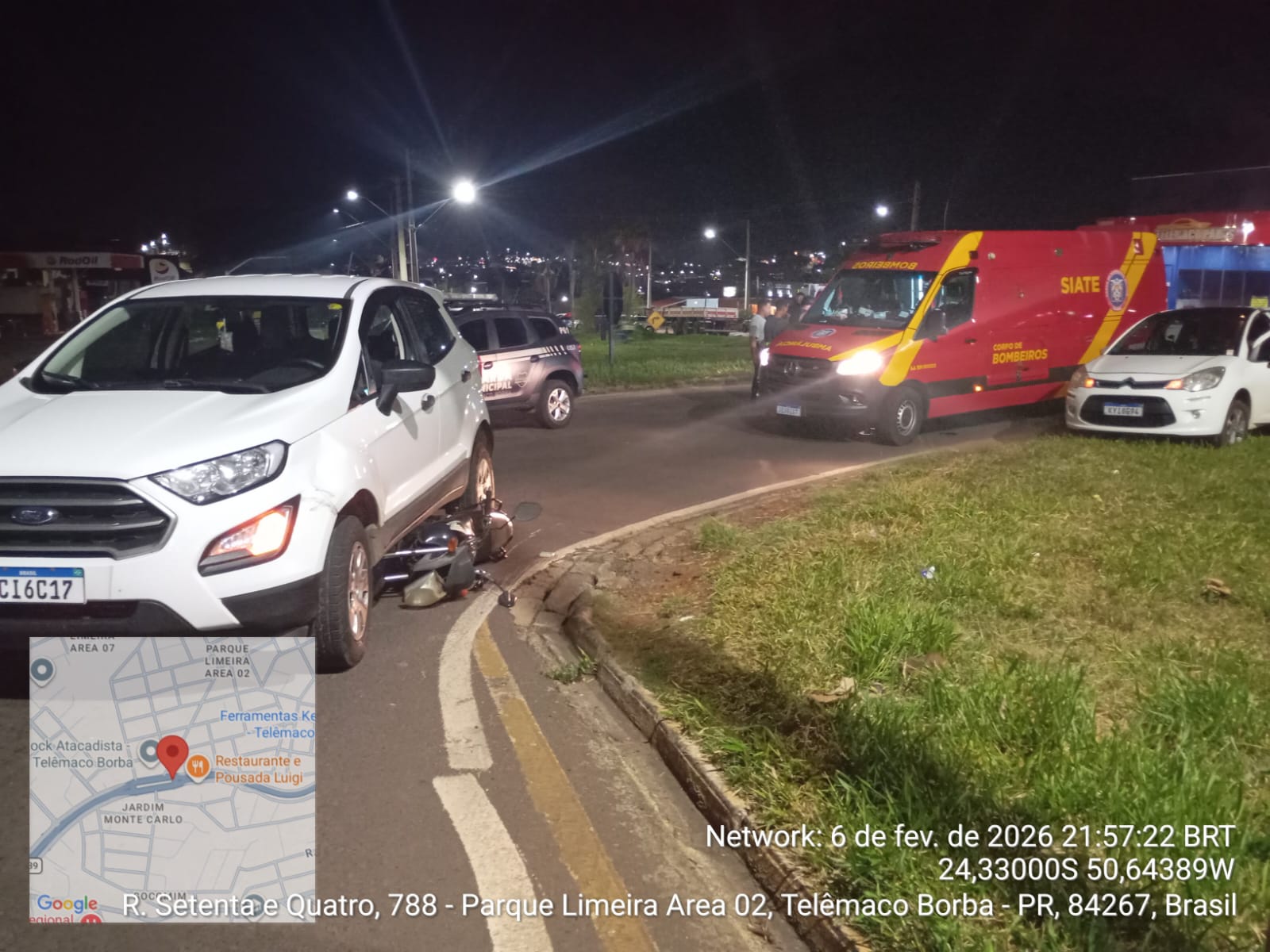Telêmaco Borba – Um acidente de trânsito envolvendo uma motocicleta e um automóvel deixou duas pessoas feridas na noite de quinta-feira (06), por volta das 21h20, na PR-160, em Telêmaco Borba, nos Campos Gerais.