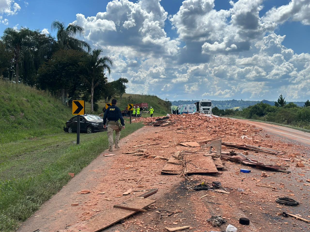 Acidente na BR-277 envolve três veículos após derramamento de carga de tijolos