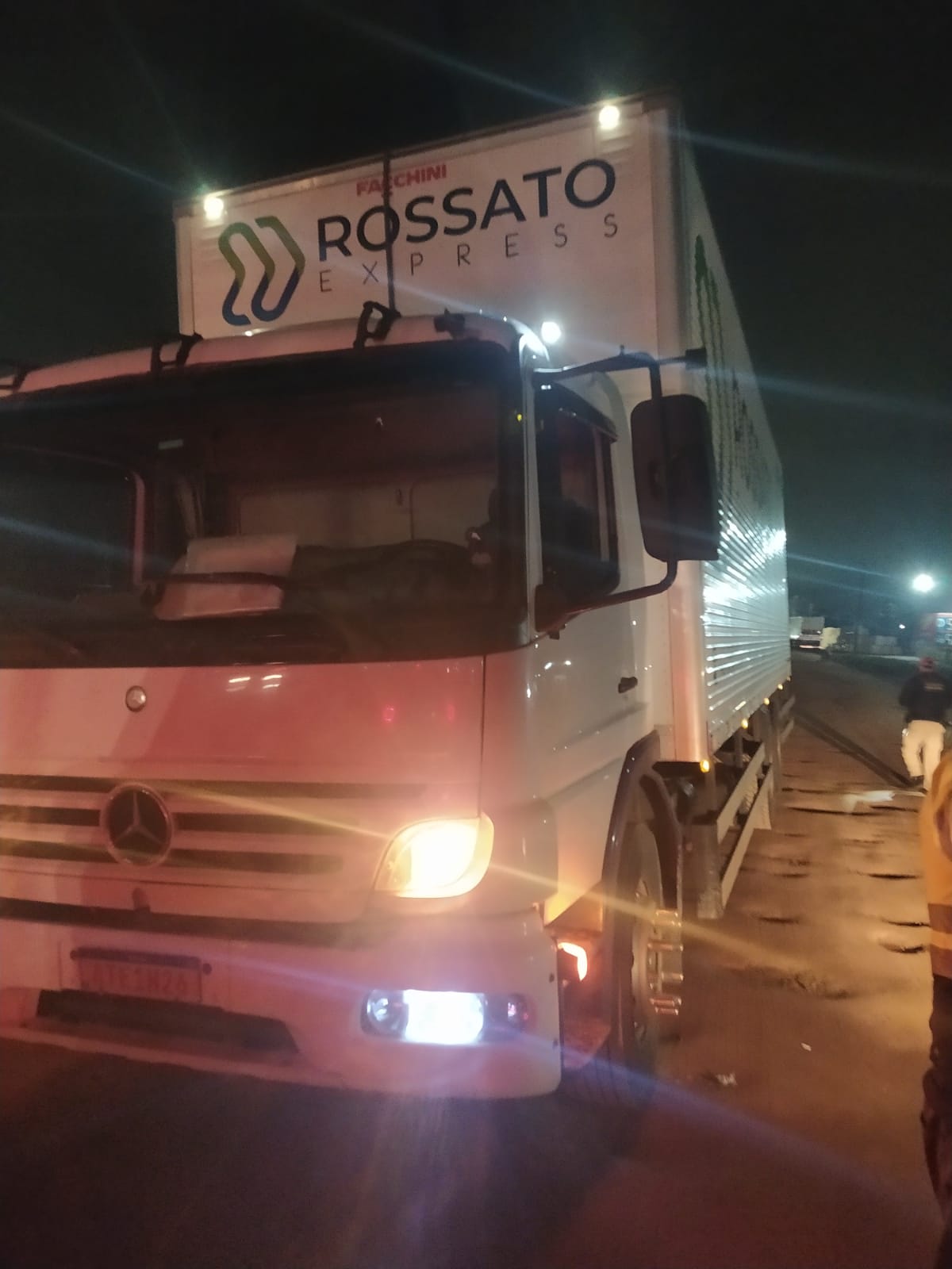 Colisão lateral envolveu caminhão, carro de passeio e um terceiro veículo que fugiu do local.