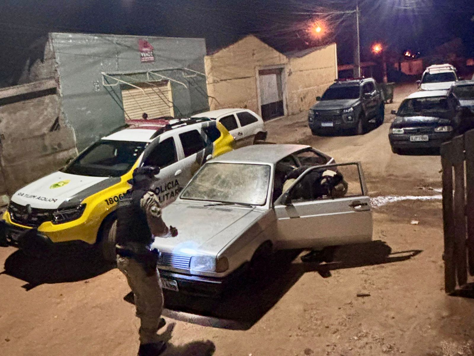 A prisão ocorreu após uma denúncia anônima que indicou o paradeiro de um veículo suspeito. Equipes policiais se deslocaram até a Avenida Vicente Fiorilo, onde encontraram um VW/Gol escondido, sem a placa traseira e coberto, em uma tentativa de dificultar sua identificação.