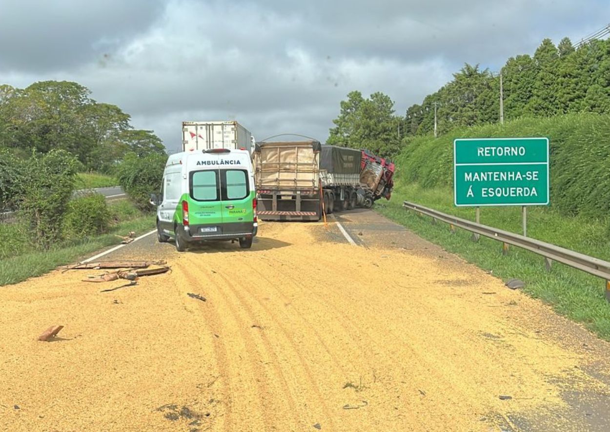 De acordo com as primeiras informações, a sequência de acidentes começou quando uma Scania bateu na traseira de uma caçamba bitrem. Logo depois, um caminhão Iveco, possivelmente sem tempo para frear, colidiu na traseira de outro caminhão, agravando a situação. A carga de soja dos caminhões está espalhada na pista.