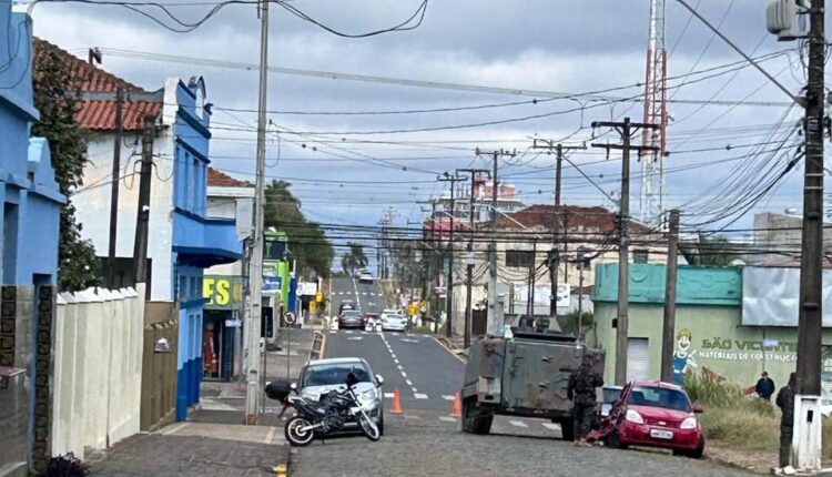 Ponta Grossa – Blindado do Exército Brasileiro se envolveu em um abalroamento lateral com dois carros estacionados. Foi na rua Siqueira Campos, região de Uvaranas, no início da tarde desta quinta-feira (3). A cena chamou a atenção, mas, apesar do susto, não houve registro de vítimas.