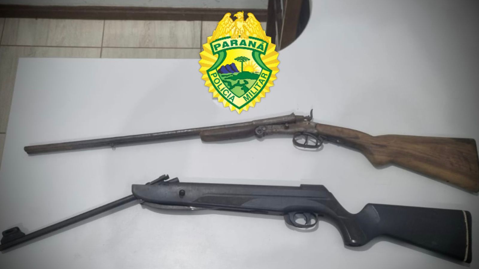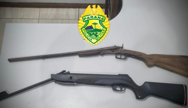 As armas apreendidas foram relacionadas à ocorrência e encaminhadas junto com o autor à 43ª Delegacia de Polícia Civil de Castro, onde o caso segue sob investigação.