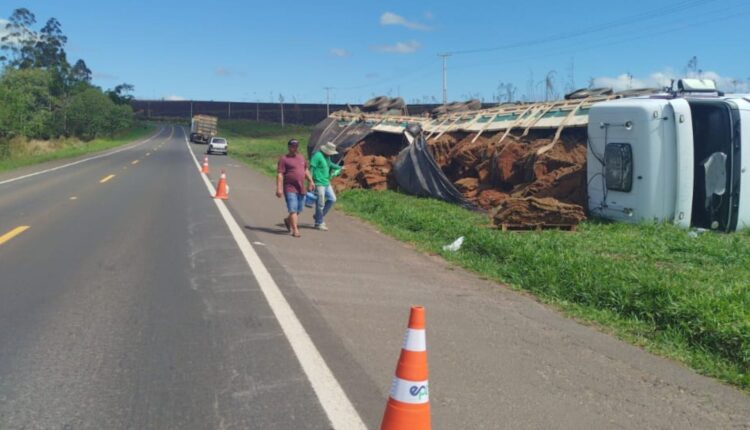 Caminhão bitrem tomba na PR-151 em Jaguariaíva e motorista sofre ferimentos leves
