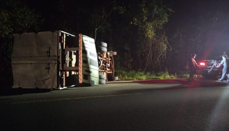 O acidente envolveu caminhão Mercedes-Benz L 608 D, com placas de Telêmaco Borba, que capotou enquanto trafegava no sentido Telêmaco a Imbaú.