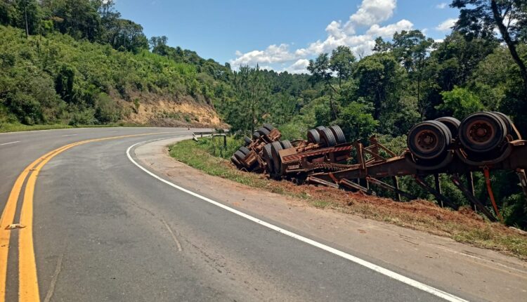 De acordo com informações da Polícia Rodoviária Estadual (PRE), o caminhão trafegava no sentido Telêmaco Borba-Ortigueira quando o motorista, identificado como J. M. O. C., de 42 anos, perdeu o controle da composição. O veículo saiu da pista e capotou na margem direita do sentido de deslocamento.