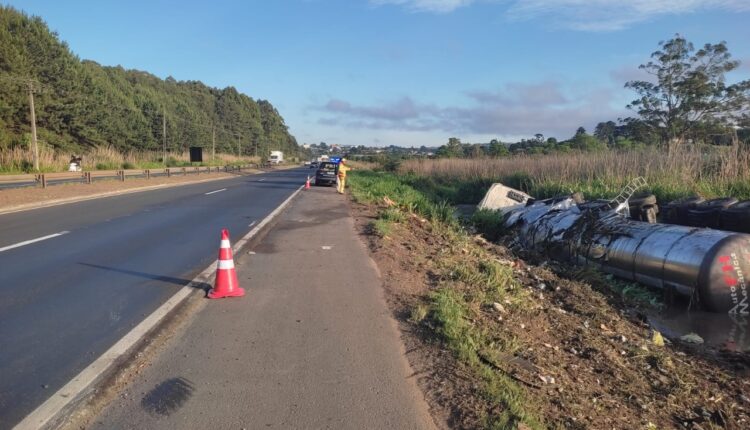 Caminhão carregado com levedura tomba e deixa um homem ferido em Ponta Grossa