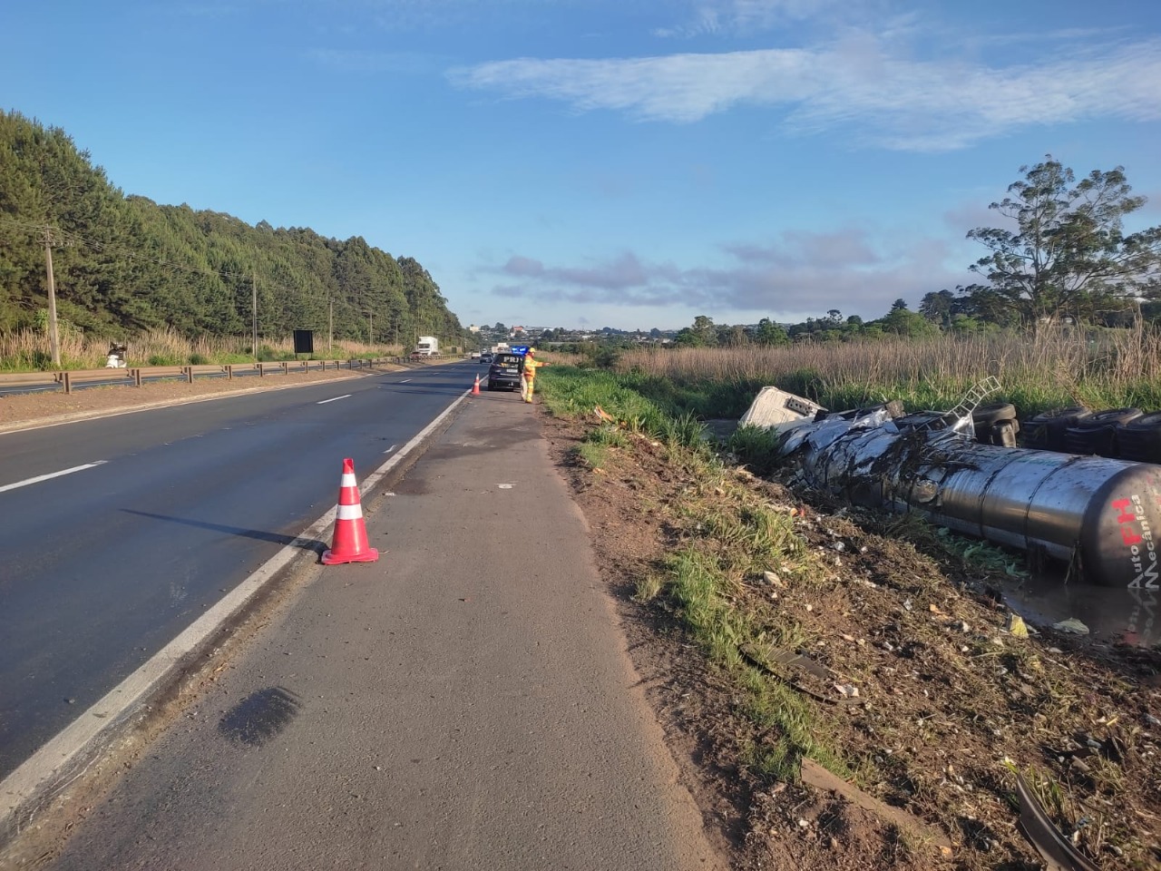 De acordo com as informações iniciais, o veículo transportava uma carga de levedura quando tombou às margens da via. As causas do acidente ainda estão sendo apuradas.