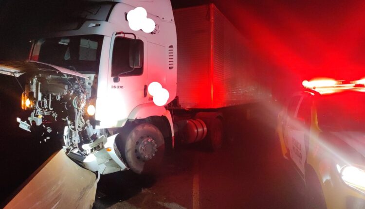 Caminhão colide em mureta de proteção na PR-151 em Ponta Grossa