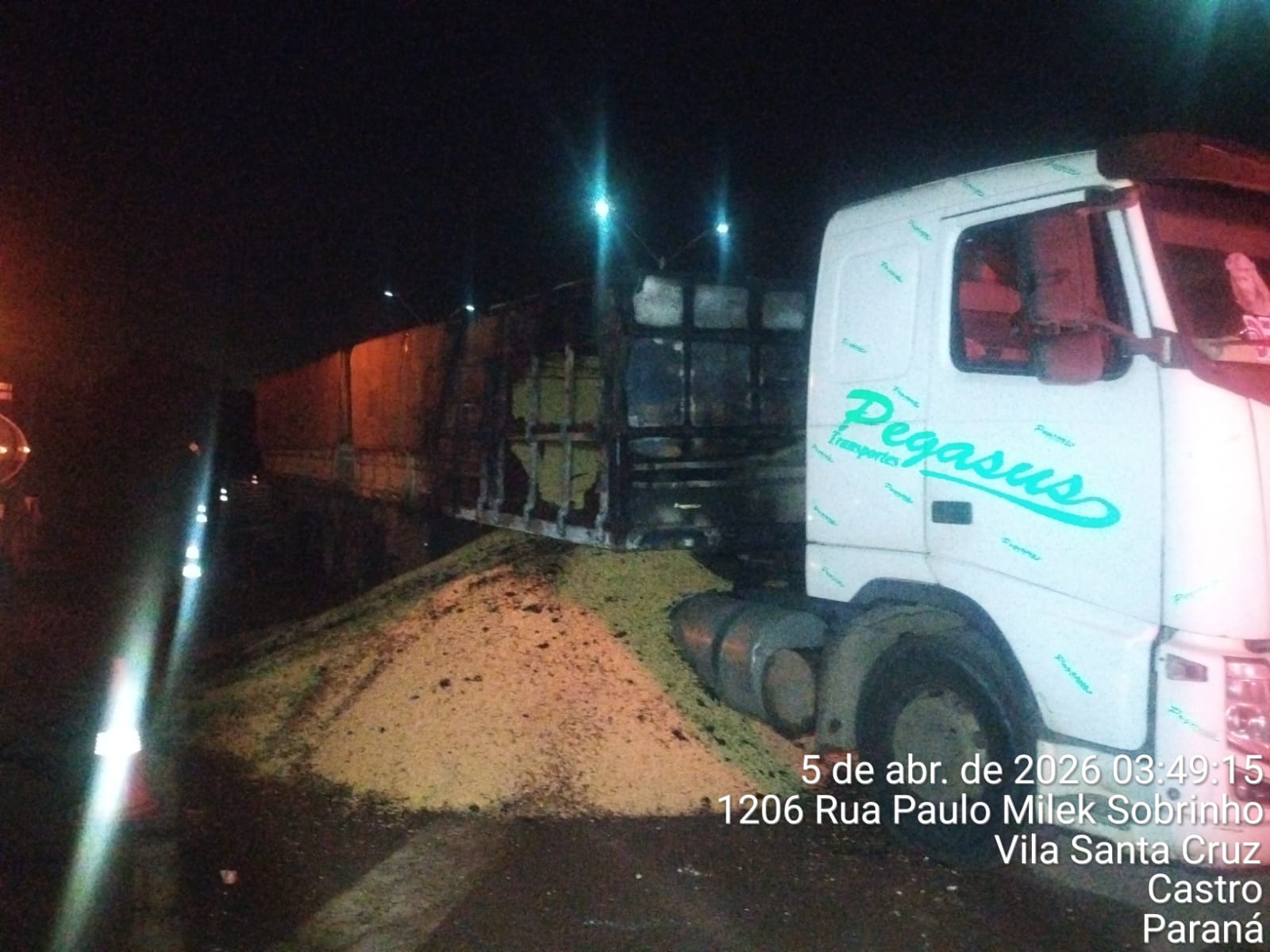 De acordo com informações do Batalhão de Polícia Rodoviária (BPRv), o veículo envolvido é um caminhão trator Volvo/FH 440, com dois semirreboques acoplados, todos emplacados em Ponta Grossa. O conjunto trafegava no sentido Piraí do Sul–Castro quando, ao atingir o ponto indicado, houve o início de um incêndio.