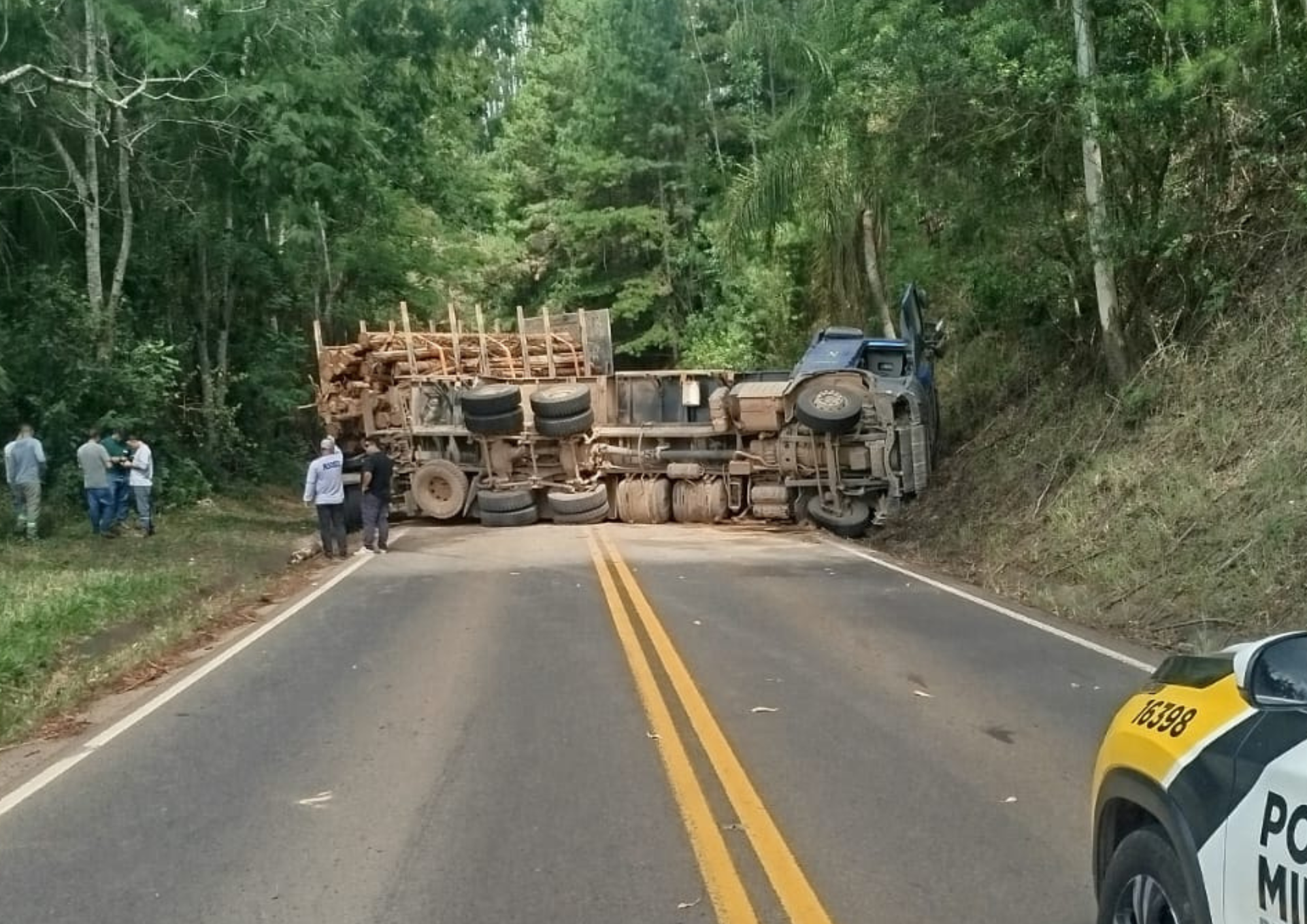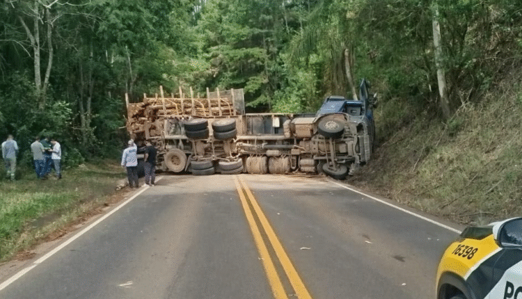 Caminhão tomba e interdita totalmente a PR-340 em Tibagi