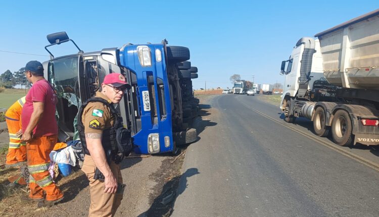 Arapoti – Um caminhão tombou na tarde desta quinta-feira (15) na PR-092, km 213, no município de Arapoti, resultando em ferimentos para o condutor e o passageiro. O acidente ocorreu por volta das 14h50, quando o veículo, um Mercedes Benz Axor, com reboque Goydo SRBTA, ambos com placas de Maringá (PR), transitava no sentido Jaguariaíva a Arapoti.
