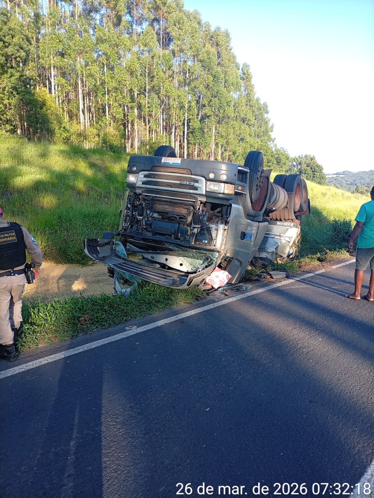 De acordo com informações da Polícia Rodoviária Estadual (BPRv), o veículo, um Scania/G420 com placas de Andirá (PR), seguia no sentido Arapoti–Jaguariaíva quando tombou à margem direita da rodovia.