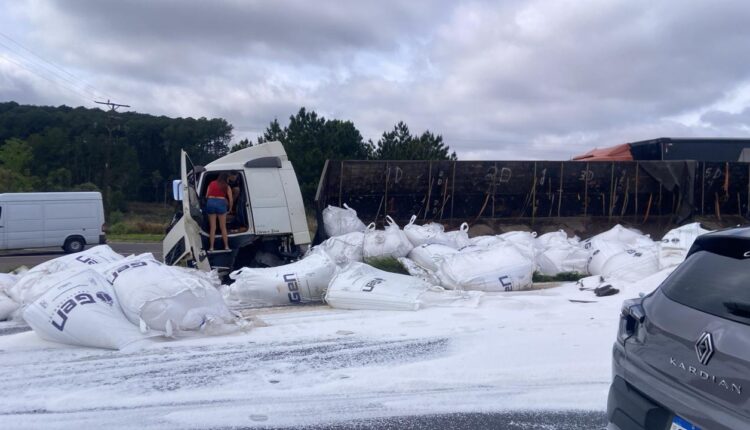 Caminhão tomba na PR-151 e carga se espalha na pista em Ponta Grossa