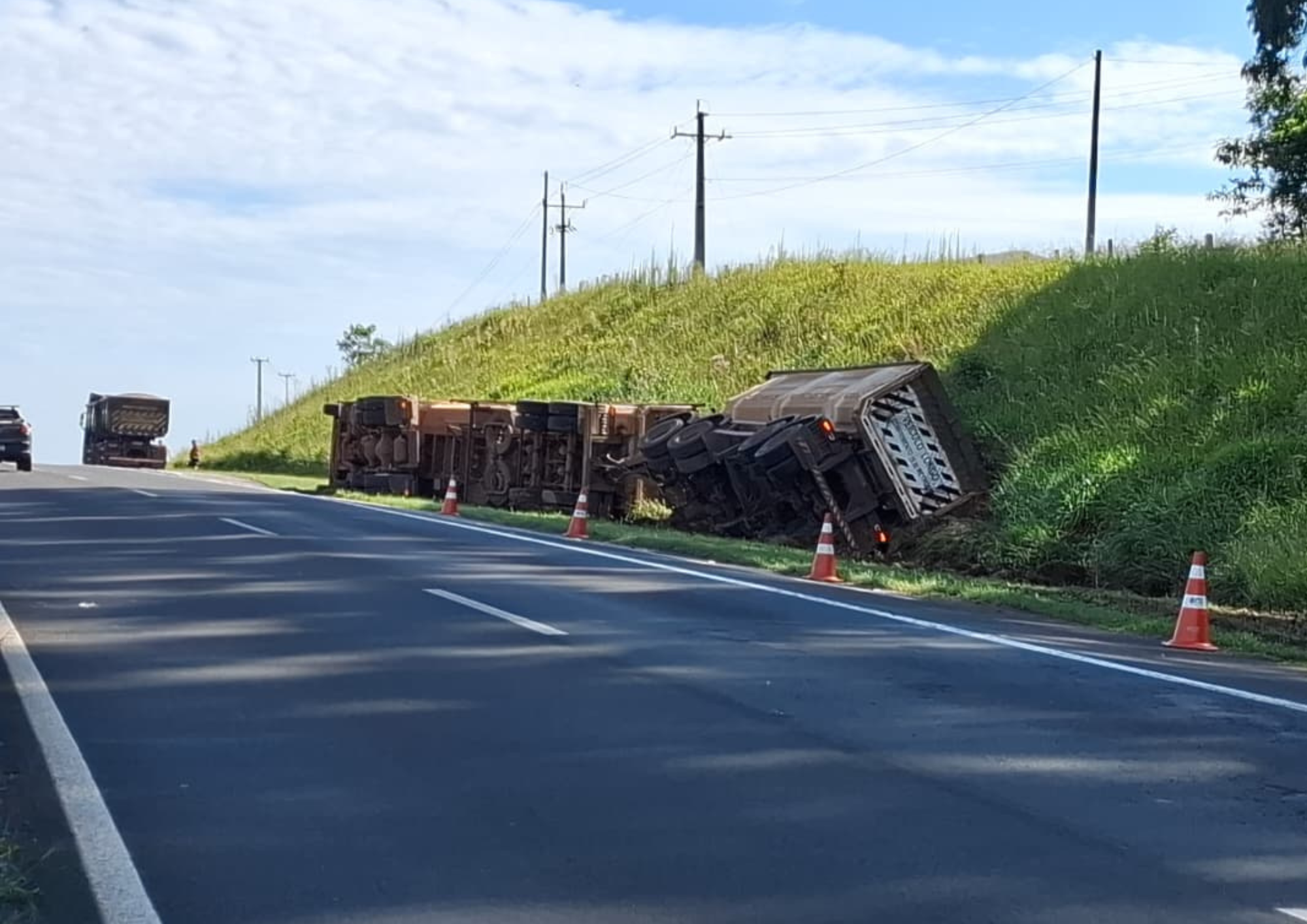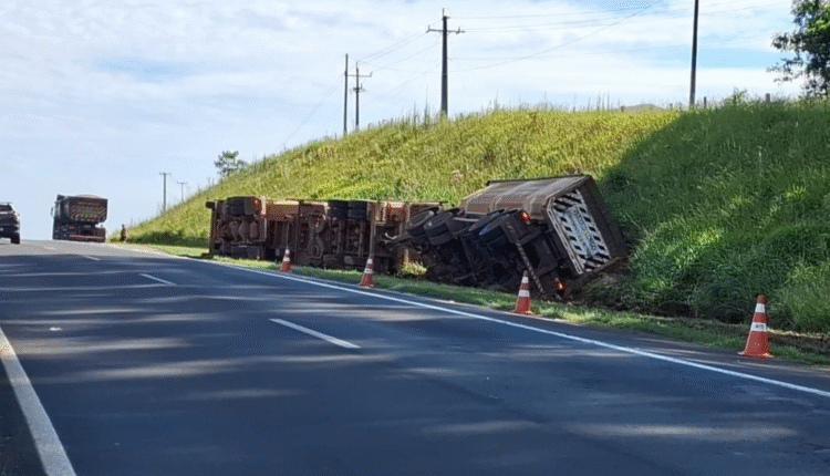 A ocorrência foi atendida até as 11h e resultou apenas em danos materiais. Segundo a Polícia Rodoviária, os veículos estavam com a documentação regular e foram liberados no local para o motorista. As causas do tombamento não foram informadas.