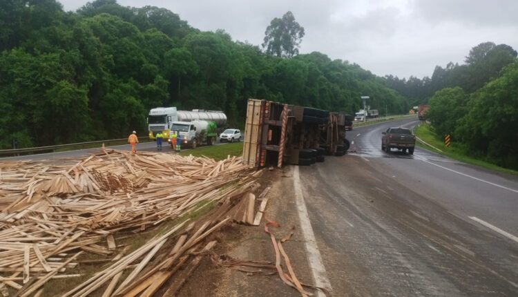 Caminhão tomba na PR-151 em Piraí do Sul e motorista fica ferido